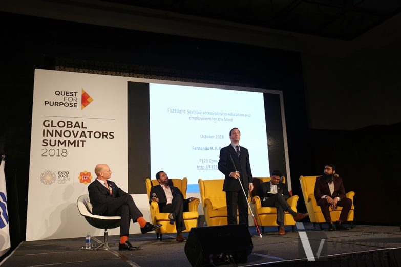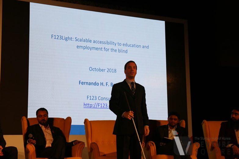 “개발도상국의 경우 시각장애인의 90%가 교육의 기회를 얻지 못합니다. 저희는 휴대할 수 있는 토킹 컴퓨터를 저렴한 비용으로 보급해 시각장애인의 독립을 돕고자 합니다.” 페르난도 보텔로 F123 대표가 글로벌 이노베이터 서밋 2018 (Global Innovators Summit) 무대 한가운데 올랐다. 시각장애인을 위한 지팡이를 짚은 채였다. 눈빛은 허공을 향했지만, 시각장애인의 불편함을 혁신적 기술을 통해 풀겠다는 그의 선한 의지는 관중들의 마음에 와닿았다.