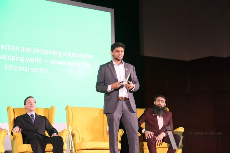 두 번째로 무대 오른 팀은 인도의 폐기물 처리 기업 가바디왈라 커넥트(Kabadiwalla connect). 인도에서 매립장으로 보내지는 폐기물량의 70% 감축하고 3천만 톤의 이산화탄소와 지방 정부의 폐기물 처리 비용을 감축하는 것이 목표인 기업이다.  시닷 한디 대표는”개발도상국에서는 지역 정부의 폐기물 처리 기능이 부족하다”며”지역 정부 예산의 20~25%가 폐기물 처리에 사용된다는 통계가 있는데 인포멀 섹터를 이용하면 훨씬 저렴한 방식으로 폐기물을 처리할 수 있다”고 전했다. 가바디왈라 커넥트는 폐기물 처리시설에 가기 전 판매할 수 있는 폐기물을 모으는 스크랩 딜러(Scrap dealer)들의 수입을 증가시키기 위한 노력도 진행하고 있다.