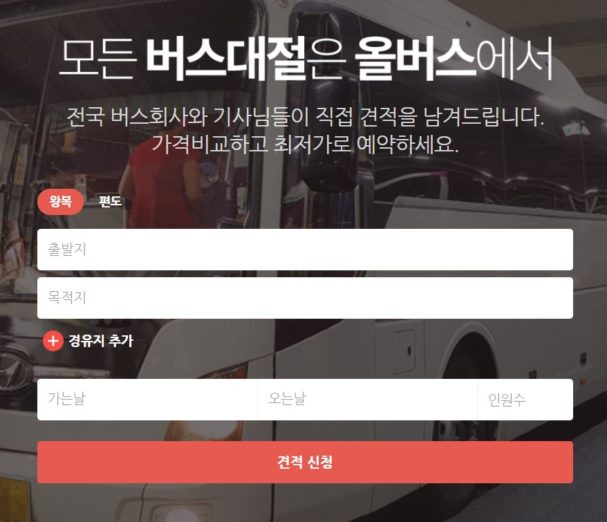버스대절 가격비교 올버스는 누적 거래액 60억원을 돌파했다고 17일 밝혔다.올버스는 지난 2016년 5월에 출시한 버스대절 가격비교 플랫폼으로 운행 가능한 버스기사로부터 견적 금액을 받아 비교해 볼 수 있는 서비스다. 현재 올버스는 150개의 버스회사와 1,500명의 버스기사와 제휴를 맺은 상태며 지난 9월말 기준 월 7,000건의 견적이 등록되고 누적 견적수도 10만건을 돌파했다.