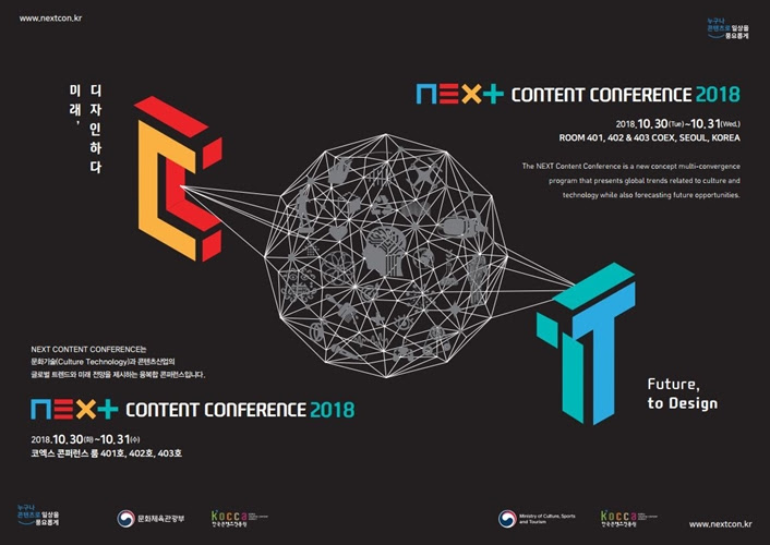 문화체육관광부가 주최하고 한국콘텐츠진흥원(이하 ‘한콘진’)이 주관하는 ‘2018 넥스트 콘텐츠 콘퍼런스(NEXT Content Conference 2018)’가 30일부터 이틀간 서울 삼성동 코엑스에서 개최된다.