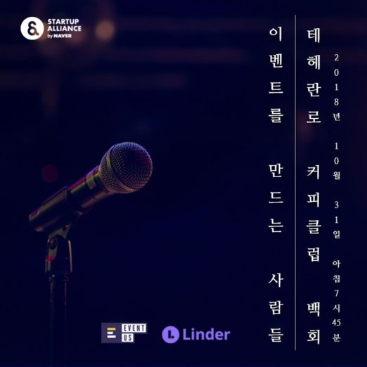 ◇ [10월 31일 수] 테헤란로 커피클럽 100th=스타트업 네트워킹 모임 ‘테헤란로 커피클럽’ 100번째 모임이 10월 31일 오전 7시 45분부터 9시까지 스타트업얼라이언스에서 열린다. 커피클럽은 전문가 발표와 스타트업 소개, 네트워킹으로 진행될 예정. 또 ‘이벤트를 만드는 사람들의 이야기’를 중심으로 각 영역에서 활동 중인 이벤터를 만날 예정이다.