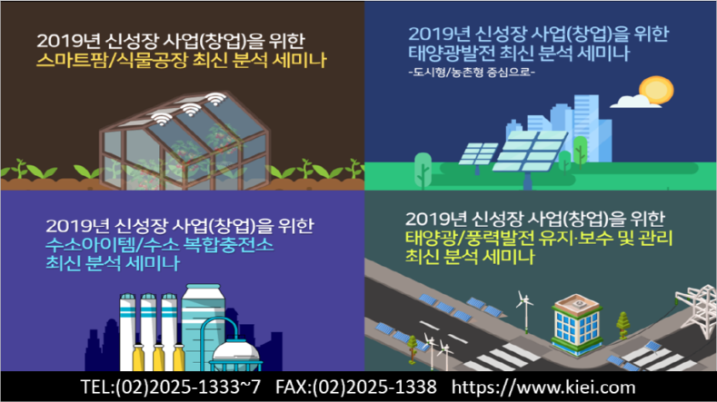 산업교육연구소가 11월 20∼28일까지 서울 여의도 사학연금회관에서 2019년 신성장 사업을 위한 세미나-스마트팜/태양광,풍력/유지,보수/수소,충전소-를 개최한다고 밝혔다.