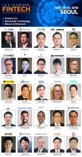 킨텍스가 오는 11월 29∼30 양일간 경기도 킨텍스에서 열리는 인사이드 핀테크 컨퍼런스&엑스포 2018의 주요 연사 라인업과 프로그램 일부를 공개했다.