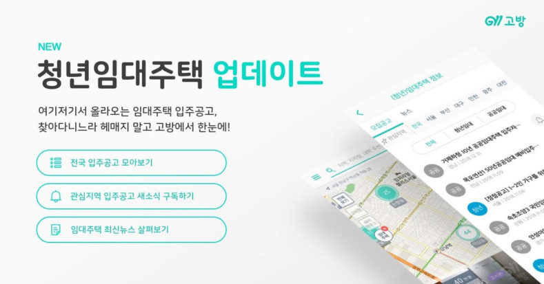 고방의 청년임대주택 서비스는 한국토지주택공사(LH), 서울도시주택공사(SH)의 입주공고와 전국 지자체에서 지원하는 공급 및 자금지원 정보를 일단위로 제공한다. 또한 청년임대주택과 관련한 최신뉴스 및 정보를 제공해 청년들에게 다소 복잡하고 어려울 수 있는 임대주택 정보의 쉽고 빠른 이해를 도울 예정이다.