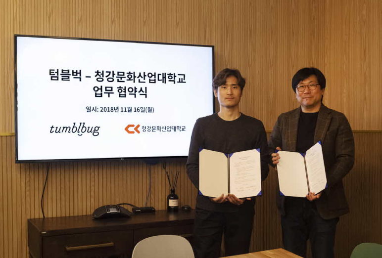 텀블벅이 지난 11월 16일 청강문화산업대학교와 문화 콘텐츠 산업을 위한 업무협약을 체결했다고 밝혔다.