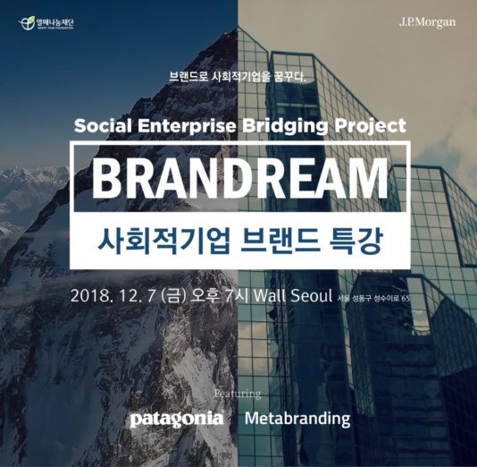 ◇ [12월 07일 금요일] 사회적기업 브랜드 특강=열매나눔재단이 사회적 기업과 소셜 벤처 기업을 대상으로 12월 7일 19시 성수동 wall seoul에서 사회적기업 브랜드 특강을 개최한다. 이번 행사는 글로벌 금융회사 JP모간과 열매나눔재단이 협업한 ‘Social Enterprise Bridging Project’ 사업설명회의 일환으로 행사취지와 지원사업 소개와 함께 브랜드 전문 컨설턴시 ‘메타브랜딩’ 박항기 대표의 오픈 특강과 사회적기업 ‘파타고니아 코리아’ 김광현 과장의 특강이 있을 예정이다.