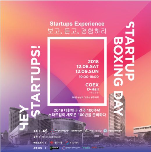 ◇ [12월 8~9일] 2018 헤이스타트업! & 스타트업 박싱데이=비영리 스타트업 커뮤니티 ‘스타트업, 식사는 하셨습니까’가 주관하고 한국무역협회, 제주창조경제혁신센터가 공동 주최하는 국내 최대 규모의 스타트업 페스티벌인 ‘헤이스타트업!’과 ‘스타트업 박싱데이’가 오는 12월 8~9일 코엑스 D홀에서 개최된다. 2015년부터 시작된 ‘헤이스타트업!’은 국내 스타트업간 교류를 돕고 스타트업 생태계에 대한 대중의 관심을 높이기 위한 행사. 가든파티, 국제 컨퍼런스 등 매해 새로운 컨셉트로 진행해 왔고 2017년에는 ‘글로벌’을 테마로 1만 5,000여 명이 방문하는 대규모 행사로 발전했다.