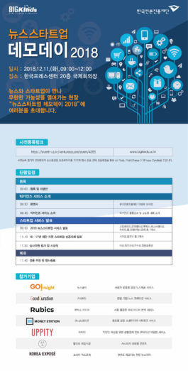 한국언론진흥재단이 12월 11일 프레스센터 20층 국제회의장에서 2018 뉴스 스타트업 데모데이를 연다고 밝혔다.