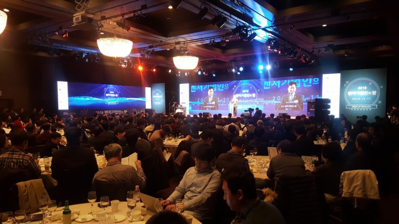 벤처기업협회가 11일 서울 역삼동 GS타워에서 2018년 벤처기업인의 밤 행사를 개최했다. 이날 행사는 벤처기업의 발전과 육성을 위해 노력한 벤처기업인 및 유관기관 관계자 등에게 올해의 벤처상을 시상하고 벤처기업의 도약과 화합을 도모하는 자리로 마련됐다.
