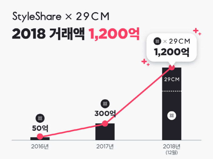 스타일쉐어가 올초 29CM을 인수한 뒤 올해 연간 거래액이 양사 합쳐 1,200억 원을 넘어섰다고 밝혔다. 창사 이래 최대 실적이라는 설명이다.