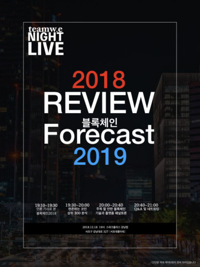 팀위가 12월 18일 스파트플러스 강남점에서 2018년 블록체인 이슈 결산 및 2019년을 전망하는 팀위 밋업을 진행한다고 밝혔다.