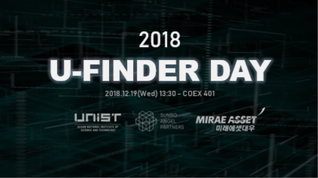 ◇ [12월 19일 수] 2018 U-FINDER DAY=UNIST(Ulsan National Institute of Science and Technology, 울산과학기술원)가 선보엔젤파트너스, 미래에셋대우와 함께 액셀러레이팅한 기술 기반 스타트업 데모데이 ‘2018 U-FINDER DAY’를 12월 19일 13시 30분 코엑스 컨퍼런스룸에서 개최한다.