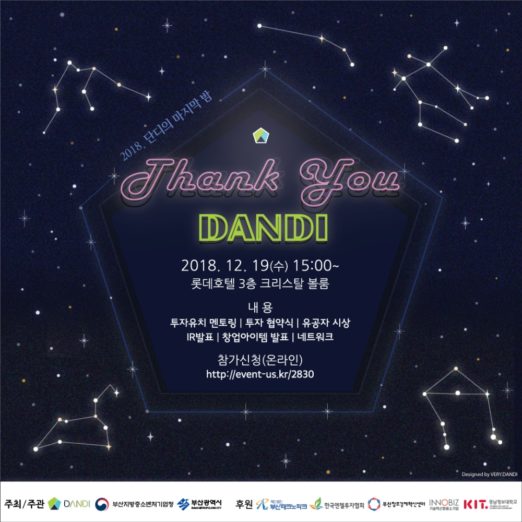 ◇ [12월 19일 수요일] 2018년 6회 단디벤처포럼=부산지방중소벤처기업청과 부산광역시, 단디가 주최, 주관하는 2018년 6회 단디벤처포럼을 12월 19일 17시부터 부산 서면 롯데호텔 3층 크리스탈볼룸에서 개최한다. 이번 행사는 1부 스타트업 투자유치전략 멘토링과 2부 단디벤처포럼으로 진행되며 투자유치전략 멘토링에서는 투자유치를 위한 벤처캐피털 멘토링과 상담을 진행한다. 2부에서는 기술성·사업성이 우수한 스타트업의 IR 발표와 함께 초기 청년창업기업팀의 창업 아이템 발표를 진행한다. 행사가 종료되면 창업가와 투자가 및 참가자 네트워킹이 진행된다. 행사에 대한 자세한 내용은 이곳에서 확인할 수 있다.