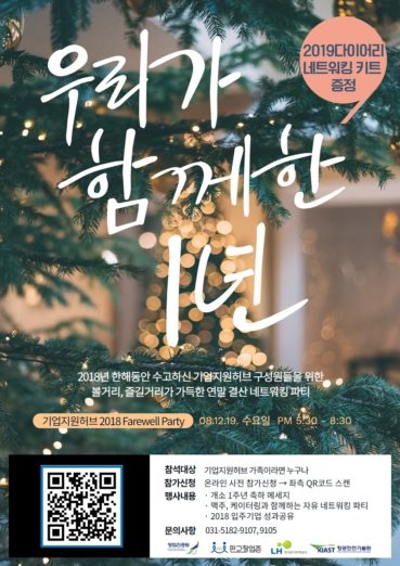 ◇ [12월 19일 수] 판교 기업지원허브 연말 결산 네트워킹 파티=판교 제2테크노밸리 기업지원허브가 개소 1주년을 기념해 연말 결산 네트워킹 파티를 12월 19일 17시 30분부터 판교 제2테크노밸리 기업지원허브 1층 네트워킹 홀에서 개최한다. 판교 제2테크노밸리는 유망 소프트웨어 기업들이 집중된 판교 테크노밸리와 연계를 통해 글로벌 혁신 클러스터 조성 및 창업·혁신 생태계를 구축하고 다양한 기능의 융복합을 통해 4차산업혁명 혁신 클러스터 랜드마크로 육성하기 위해 지난해 3월 정부 산하 11개 창업지원센터가 입주해 240여개 창업기업에 시세 대비 저렴한 사무 공간과 사업별 원스톱 서비스를 제공해왔다. 또 기업지원허브가 배출한 성장기업과 유망 중소·벤처기업을 위한 기업성장센터를 연초에 조성해 지난 5월부터 선발된 기업들이 본격적으로 입주를 시작했다. 이번 판교 기업지원허브 연말 결산 네트워킹 파티는 기업허브 입주기업을 대상으로 개소 1주년을 축하하고 입주기업의 성과를 공유하며 네트워킹하기 위함이다. 행사에 대한 자세한 내용은 이곳에서 확인할 수 있다.