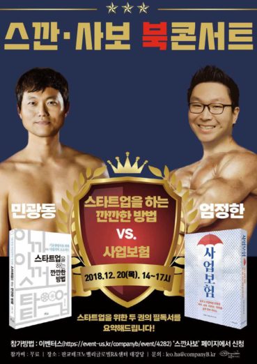◇ [12월 20일 목요일] 스깐사보 북 콘서트=출반사 초록비책공방이 스타트업 관계자, 스타트업에 관심있는 예비 창업자들을 위한 스깐사보(스타트업을 하는 깐깐한 방법, 사업보험) 북 콘서트를 12월 20일 14시부터 판교테크노밸리글로벌R&D센터 대강당 1층에서 개최한다. 행사는 스타트업을 위한 도서 2권을 이야기하는 자리가 될 예정이다. 도서는 사업하는 사람이 모르는 위험한 숨겨진 지식재산권이야기를 사업보험의 저자 엄정한이 브러커에게 사기당하지 않고 내 사업계획(서) 스스로 점검하는 방법을 ‘스타트업을 하는 깐깐한 방법’의 저자 민광동이 이야기 할 예정이다. 행사에 대한 자세한 내용은 이곳에서 확인할 수 있다.