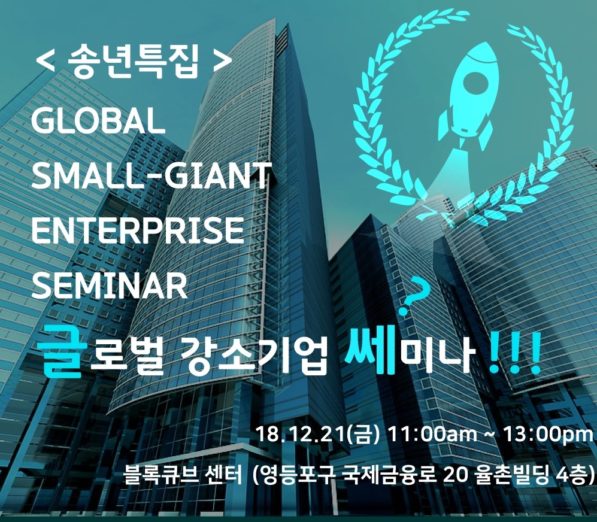 ◇ [12월 21일 금] KOSBI글로벌강소기업세미나=중소기업연구 전문기관 중소기업연구원(KOSBI)이 글로벌강소기업세미나 송년특집을 12월 21일 11시부터 영등포 블록큐브 센터에서 개최한다. 이번 12월 세미나는 송년특집으로 기획해 역대 글로벌세미나 강연자를 특별 패널로 초대해 진행할 예정. 패널 참여자는 중소기업진흥공단 창업기술처 김성희처장과 중소기업연구원 황경진연구위원, 중소기업연구원 김희선연구위원이다. 또 여의시스템 대표이자 이노비즈협회 성명기 회장의 창업성공, 혁신성장의 노하우와 끊임없이 도전을 멈추지 않는 삶의 이야기할 예정이다. 행사에 대한 자세한 내용은 이곳에서 확인할 수 있다.