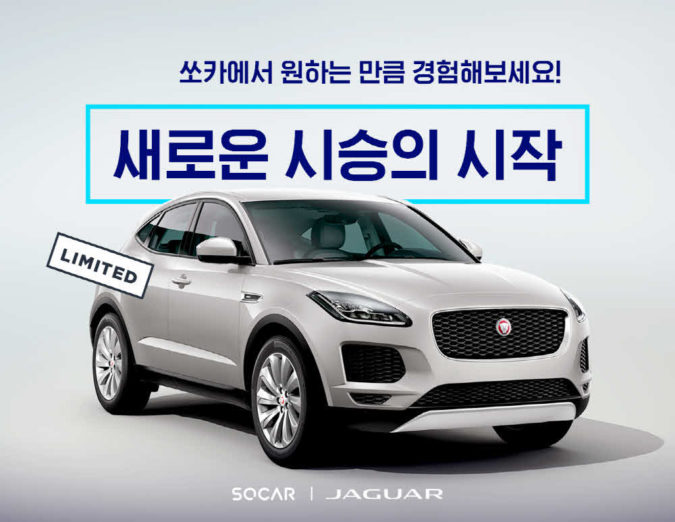 쏘카가 12월 31일부터 내년 6월 2일까지 재규어 소형 SUV인 재규어 E-PACE P250 S 한정 시승 캠페인을 진행한다고 밝혔다. 기간 중 서울과 경기 지역 쏘카존에서 E-페이스 10대를 만나볼 수 있는 것.