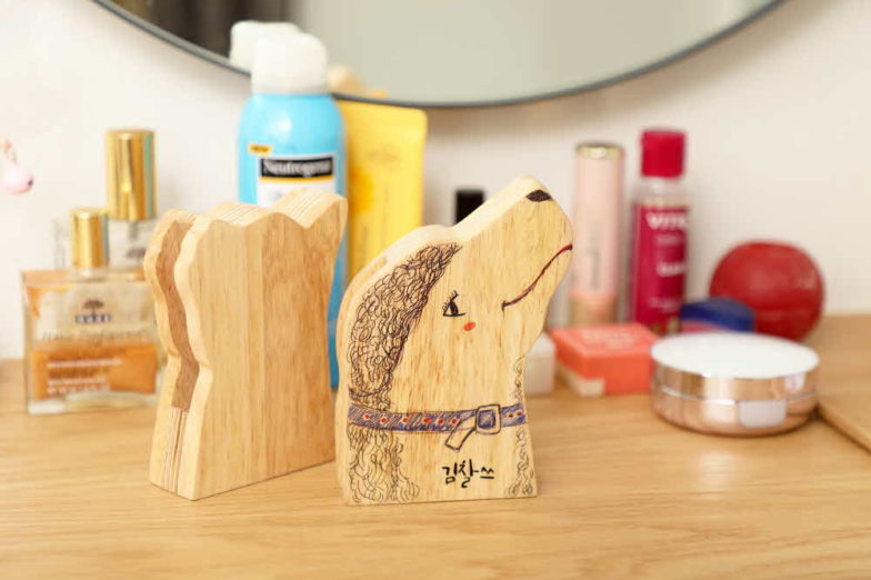 가장 큰 특징은 사용자가 자신의 반려동물 사진을 펀딩 후원을 하면서 함께 보내주면 얼굴 모양 우드스피커를 50개 한정 수량으로 만들어주는 것. 디자인베이 최정희 대표가 자신의 반려동물 모양으로 뭔가를 만들고 싶다는 얘기에서 시작된 프로젝트의 컨셉트를 살린 것이다.