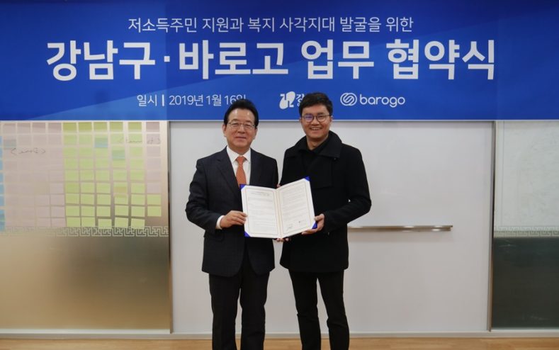 물류 스타트업 바로고가 강남구청과 저소득주민 지원과 복지사각지대 발굴을 위한 업무 협약을 체결했다고 17일 밝혔다.