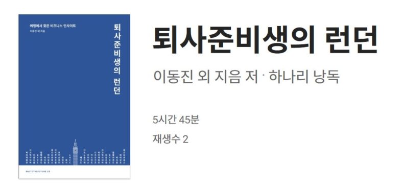 퇴사준비생 시리즈는 창의적인 도시에서 비즈니스 아이디어와 인사이트를 얻기 위해 시작한 것으로 도쿄와 런던을 출간한 바 있다. 미디어자몽은 트래블코드와 협업해 이동 중에도 들을 수 있도록 퇴사준비생의 런던 콘텐츠를 오디오북으로 제작했다. 녹음은 크리에이터 겸 방송인 출신 하나리가 맡았다.