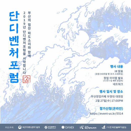 ◇ [2월 27일 수] 제38회 단디벤처포럼_2019년 첫 번째 행사=부산지방중소벤처기업청이 부산 지역 대학생 등 청년의 벤처·창업붐을 조성하고 창업기업 투자유치를 도모하기 위해 민관 협력으로 운영하는 단디벤처포럼을 2월 27일 17시부터 부산창업카페 부경대 대연점에서 개최한다. 이번 포럼은 부산중기청, 부산광역시, 단디, 부산테크노파크, 한국엔젤투자협회에서 주관, 주최하며 횟수로는 38회이자 2019년 첫 번째 행사다. 포럼에서는 기술성·사업성이 우수한 기업의 IR 발표와 함께 극초기·예비 창업자의 창업 아이템 발표, 네트워킹이 함께 진행된다. 이번 행사는 창업에 관심 있는 대학생 또는 일반인, 개인투자자 및 엔젤투자자 등 창업에 관심있는 누구나 참가 가능하다. 행사에 대한 자세한 내용은 이곳에서 확인할 수 있다.