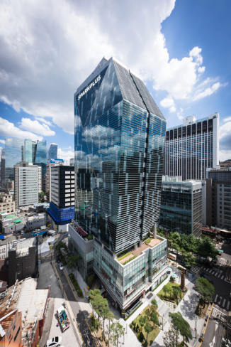 서울시청 잔디광장 정면에서 보이는 센터플레이스 빌딩 옥외 간판은 스파크플러스 개점과 함께 스파크플러스 간판으로 교체될 예정이다.