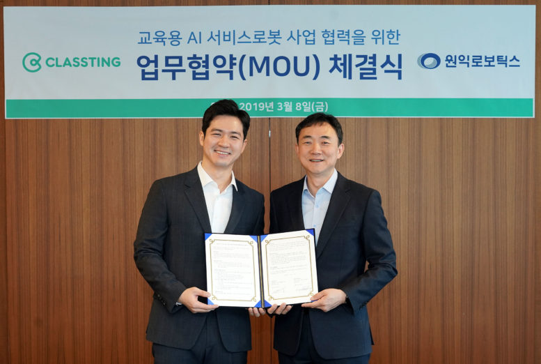 조현구 클래스팅 대표는 “클래스팅의 탄탄한 공교육 빅데이터와 플랫폼이 로봇 기술과 시너지를 일으켜 학생, 학부모와 교감하고 더욱 풍부한 교육 경험을 제공하는 미래 교육 서비스로 발전할 것”이라며 “로봇 선두 기업 원익로보틱스와의 파트너십을 통해 에듀테크 리더십을 강화하고 교육용 로봇 시장의 발전과 대중화를 이끌어갈 것”이라고 포부를 밝혔다.