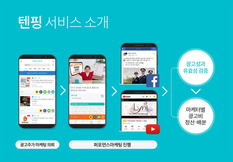텐핑은 광고주와 1인 퍼포먼스마케터를 연결하는 애드테크 플랫폼이다. 광고 성과 트래킹 시스템을 통해 마케터별 광고 성과를 산출하고 있으며 광고비는 실시간으로 정산된다. 지난 2016년 서비스를 선보인 해 15.9억 원에서 2018년 연간 매출 130억 원을 달성한 바 있다.