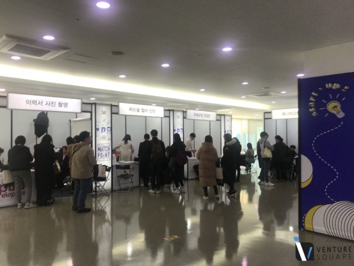 “수수료 없는 부동산 중개 앱 집토스입니다.” 채용 부스에 들어서자 담당자가 방문객을 맞이했다. “다른 부동산 중개 앱이랑 다른 점은 뭐에요?” “시장은 사업을 하면서 찾은 건가요, 시장을 찾고 사업을 시작한 건가요?” 집토스 부스를 찾은 방문객이 질문을 이어나갔다. 방문객이 자리를 뜨자 한 손에 기업 정보가 담긴 브로슈어를 든 또 다른 방문객이 채용 부스를 찾았다.