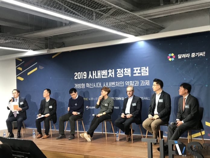 중기부는 2018년부터 사내 벤처 육성 프로그램을 실시하고 있다. 정부가 나서 사내 벤처 육성 체계와 기반 구조를 뒷받침하고 민간 중심 창업-성장-회수-재투자의 선순환적 혁신 창업 생태계를 만들겠다는 취지다. 15일 열린 코리아오픈이노베이션(이하 ‘KOI’) 포럼에서는 ‘개방형 혁신시대, 사내벤처의 역할과 과제’를 주제로 스타트업과 대기업의 오픈이노베이션 방안을 공유했다.