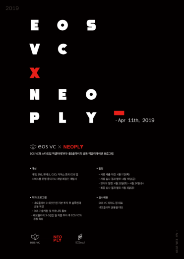 스타트업 액셀러레이터 네오플라이가 EOS 개발사인 블록원이 운영하는 투자 전문 EOS VC 한국 파트너와 함께 EOS 블록체인 스타트업 모집을 시작한다고 19일 밝혔다.