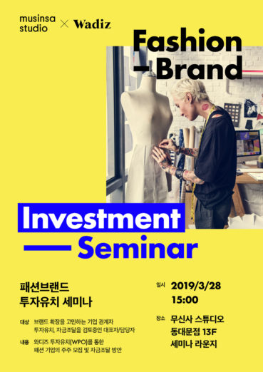 와디즈가 무신사 스튜디오와 패션 브랜드 투자유치 세미나를무신사 스튜디오 동대문점에서 28일 개최한다.