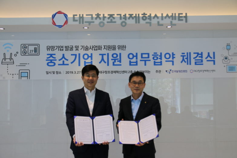 대구창조경제혁신센터(이하 ‘대구혁신센터’)가 한국발명진흥회와 업무협약을 맺고 유망기업 발굴과 기술사업화 지원을 확대한다고 28일 밝혔다.