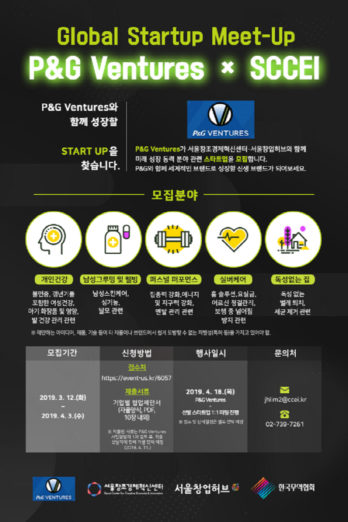 ◇[4월 18일 목] P&G Ventures X SCCEI Global Startup Meet-Up=P&G 벤처스(이하 PGV)가 서울창조경제혁신센터, 서울창업허브, 한국무역협회와 손을 잡고 다른 브랜드와 차별성을 가진 스타트업을 찾고 있다.