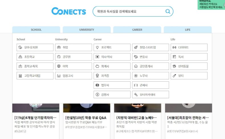 이렇게 빠른 성과를 낸 이유는 기존 교육용 앱과 다른 특징이 있기 때문이라는 설명이다. 커넥츠는 같은 관심사나 목표를 가진 친구를 만나고 선배의 질의응답과 개인 맞춤 상담, 소수에게만 공유되던 자료 공유 등을 망라한 종합 스터디 플랫폼이다. 교육용 앱이 보통 특정 연령대나 특정 분야를 서비스하는 것과 달리 커넥츠는 대입에서 공무원, 취업, 변호사, 회계사, 다이어트, 독서, 반려동물 등 수험에서 전문영역, 취미까지 아우른다. 덕분에 전 연령대의 관심을 받은 것으로 볼 수 있다.