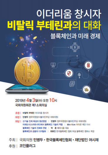 재단법인 여시재가 민병두 국회의원, 사단법인 블록체인협회와 함께 4월 3일 국회의원회관에서 이더리움 공동창립자 비탈릭 부테린(Vitalik Buterin) 초청 좌담회를 연다.