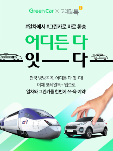 기차∙그린카 통합예약서비스는 기차와 그린카 카셰어링 예약을 하나의 플랫폼에서 한 번에 진행할 수 있는 서비스이다. 고객이 코레일 승차권 앱 코레일톡+를 통해 기차표를 예매하면 도착역에서 가장 가까운 그린존의 차량을 실시간으로 조회하고 예약할 수 있다.