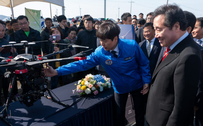 니어스랩이 지난 4일 전남 영광군에서 열린 영광풍력 발전단지 준공식에서 드론 자율비행 기술을 선보였다. 이 날 행사에는 이낙역 국무총리가 참석해 자율비행 드론에 관심을 나타내기도 했다.