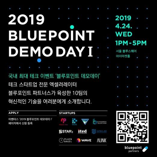 [424일 수] 2019 블루포인트 데모데이=블루포인트파트너스가 4월 24일 서울 한남동 블루스퀘어 아이마켓홀에서 제4회 블루포인트 데모데이를 개최한다.