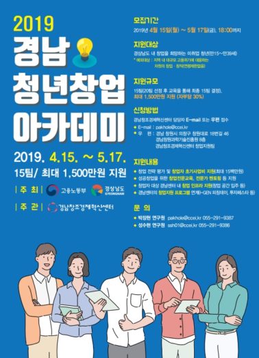 경남창조경제혁신센터가 5월 17일까지 2019 경남청년창업아카데미 사업 참가자를 모집한다고 밝혔다.