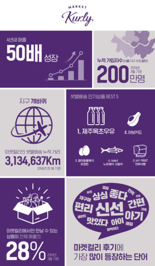 마켓컬리 성장을 견인한 ‘샛별배송’은 지난 2018년 한해 동안에만 총 313만 4637km를 달리며 가장 신선한 제품을 오전 7시 전까지 배송했다. 이는 지구 78바퀴를 도는 거리와 맞먹는 거리다.