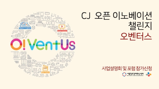 한편, 오픈 이노베이션 프로그램 ‘오벤터스(Open+Venture+Us)’ 오픈 이노베이션 주제는 △로보틱스 기술을 활용해 물류 효율성을 개선하기 위한 ‘로보틱스&물류’ △미디어 콘텐츠 산업을 진화시킬 수 있는 신기술 및 사업모델을 개발하는 ‘스마트 콘텐츠’ △극장 운영 효율 향상을 위한 응용기술 및 극장 공간을 활용한 신규 사업모델을 제안하는 ‘넥스트 시네마’ 등 3개 분야로 이뤄진다. CJ는 선발된 기업에 사업화 지원금, 각 사업분야별 권위자와 CJ그룹 실무 전문가들로 이뤄진 전담 멘토단을 구성해 3개월간의 스케일업(Scale-Upㆍ규모 확대)ㆍ인큐베이팅 프로그램을 실시한다.