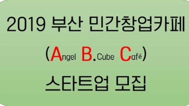 ◇[5월 7일 화요일] = 2019 부산 민간창업카페(Angel B.cube Cafe) 스타트업 모집 = 부산 민간창업카페에서 우수 아이디어 및 기술을 보유한 예비 창업자와 3년 이내 창업기업 대상으로 창업 성장을 위한 부산 민간창업카페 사용지원을 받을 스타트업을 모집한다.