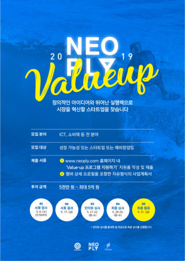 네오플라이가 5월 8일까지 2019년 밸류업 스타트업을 모집한다고 밝혔다.