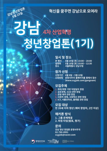 4차 산업혁명 강남 청년 창업 해커톤 운영사무국이 5월 10일까지 해커톤 참가자를 모집한다.
