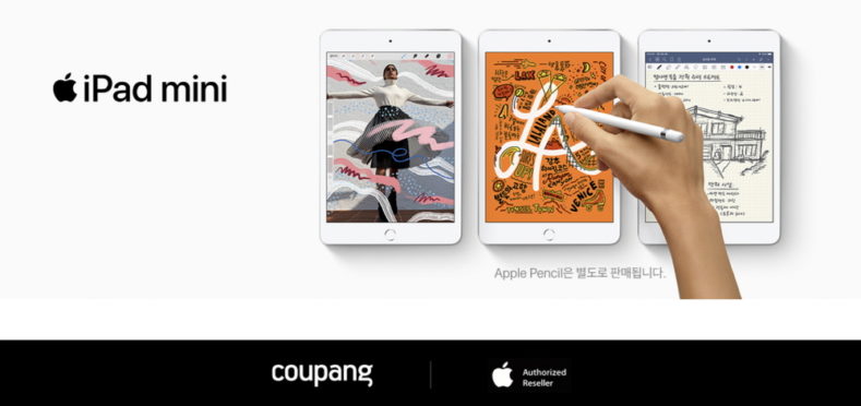 쿠팡이 애플 신형 아이패드 에어와 아이패드 미니5를 애플 브랜드관을 통해 판매한다고 밝혔다.