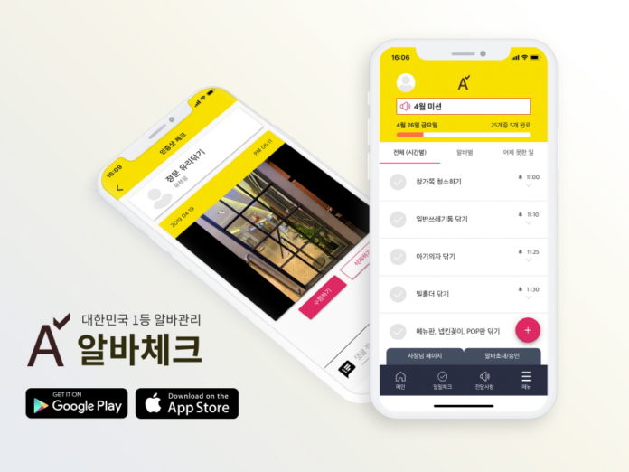 알바체크는 알바생과 관리자 모두가 효율적이고 확실하게 담당 업무 현황을 공유할 수 있는 시스템이다. 기능은 크게 3가지다. 먼저 체크리스트 기능에서는 관리자가 해야 할 일을 작성하고 매일 혹은 요일 반복, 시간과 담당 직원 지정을 하게 했다. 알바생은 이를 확인, 업무를 수행하면 인증샷을 찍거나 댓글을 주고 받을 수 있다.