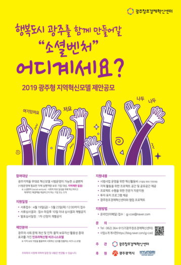 광주창조경제혁신센터가 5월 23일까지 2019년 광주형 지역혁신모델 지원사업 혁신 모델 제안 공모를 진행한다.