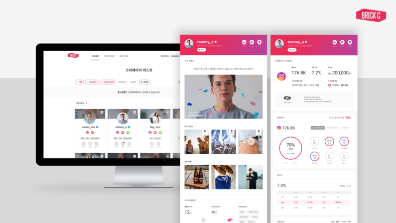 투자 유치 소식과 함께 브릭씨는 크리에이터 섭외 대행 베타 서비스도 시작한다고 밝혔다. 크리에이터 섭외 대행 서비스는 그동안 진행된 마케팅 캠페인을 통해 축적된 데이터를 활용해 전문 마케터가 엄선한 인플루언서를 단순 PPL마케팅을 넘어 브랜드 엠버서더, 모델, 영상캠페인 등 다양한 마케팅 목적에 따라 섭외할 수 있는 서비스로 고도화된 브릭미터를 적용하여 인플루언서의 팔로워 분석, 포스팅 성향, 허수 지수 등을 명확하게 확인할 수 있다.