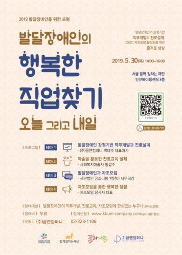 꿈앤컴퍼니가 5월 30일 함께일하는재단 인큐베이팅센터에서 발달장애인의 행복한 직업찾기를 주제로 한 발달장애인 포럼을 개최한다고 밝혔다.